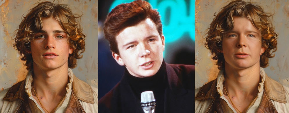 We used Rick Astley as a source image for face swapping, feel free to change it per your liking.