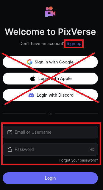 emailusing youremailandpassword. - Navigate to PixVerse.ai, logout from your account, and login again.